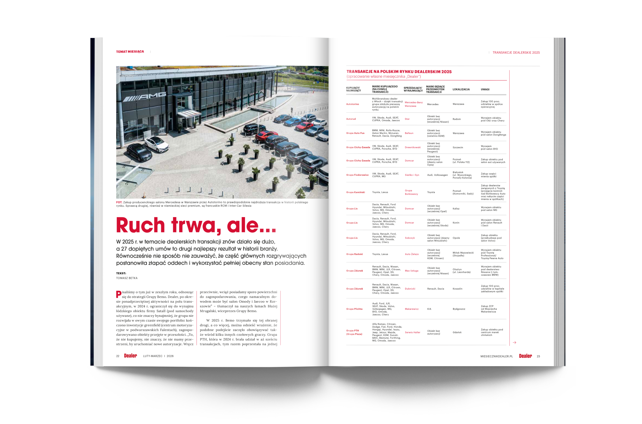 💰TRANSAKCJE MIĘDZY DEALERAMI📊 RUCH TRWA, ALE… ☕„DEALER”, NR LUTY-MARZEC 2026📑 W 2025 r. doliczyliśmy się nad Wisłą 27 „transferów”, z czego 7 dotyczyło zakupów firm (udziałów, ZCP), 7 – nabyć nieruchomości, a aż 13 ograniczyło się do wynajmu obiektów. To o cztery transakcje mniej niż w rekordowym ilościowo roku 2024, ale pod względem wartości „deali” […]